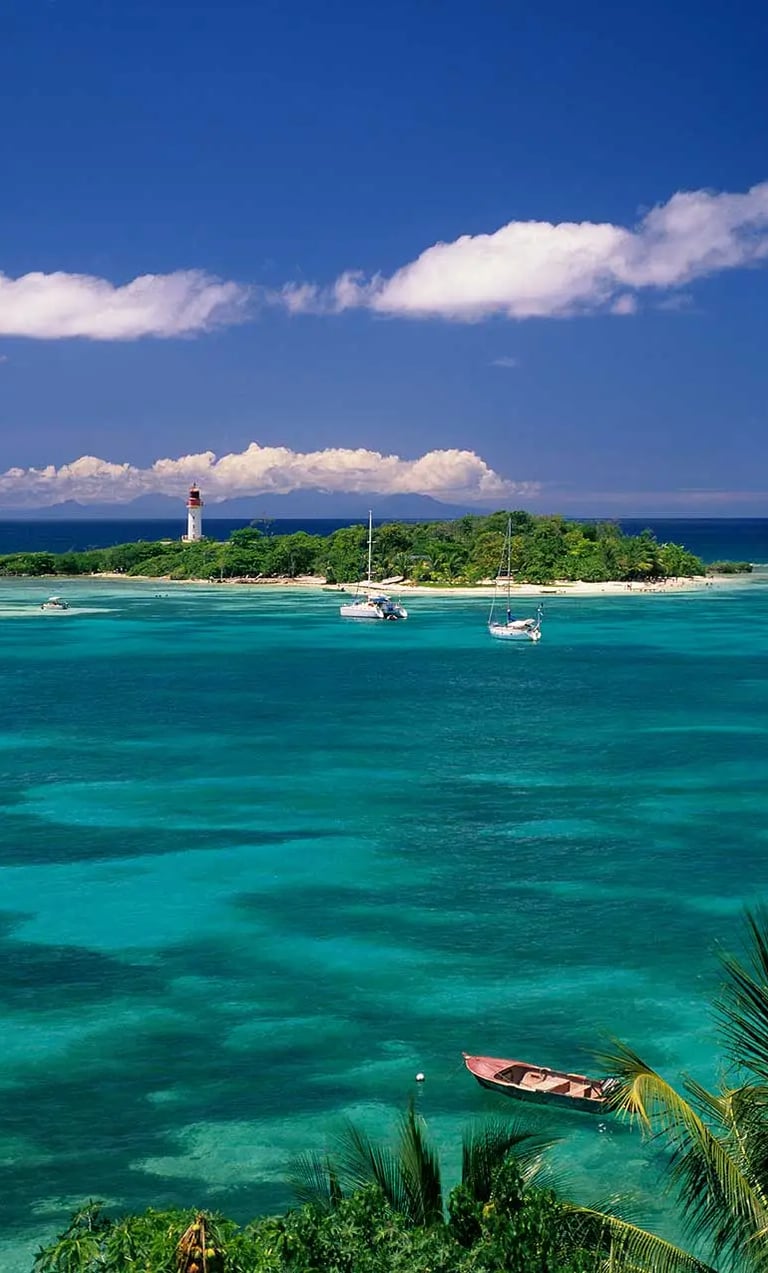 Navigation dans le lagon du Petit Cul-de-Sac Marin, entre Gosier et Pointe-à-Pitre, mer calme et eaux turquoise.